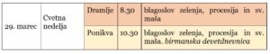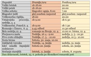 - Bogoslužni dogodki: april -junij: