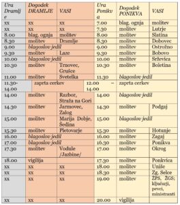 ob 9.00h sv. maša v Dramljah; ob 10.30h na Ponikvi.