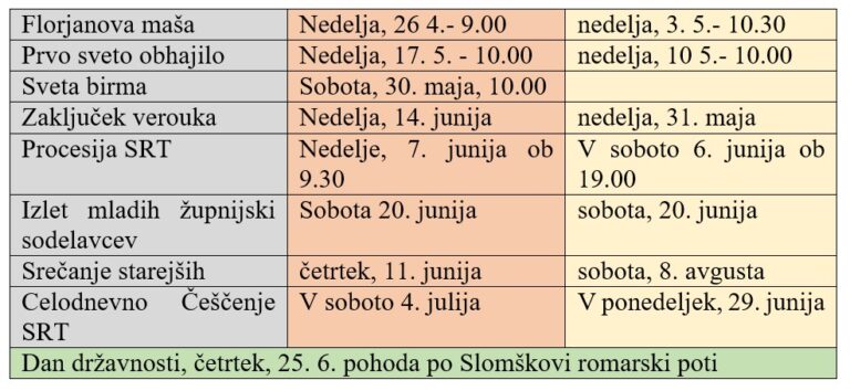 1. Dramlje: V torek, 21. aprila bo po večerni sv. maši v veroučni učilnici srečanje s straši prvoobhajancev.