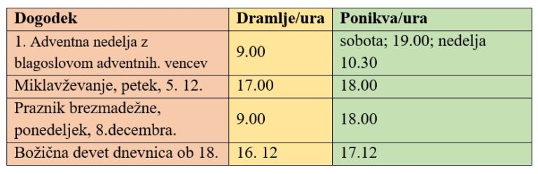 - Razpored bogoslužja v župniji Dramlje in Ponikva v decembru