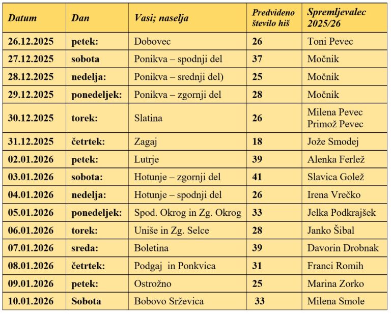 - Ponikva: Preloga Božičnega blagoslova družin in domov 2025/26: