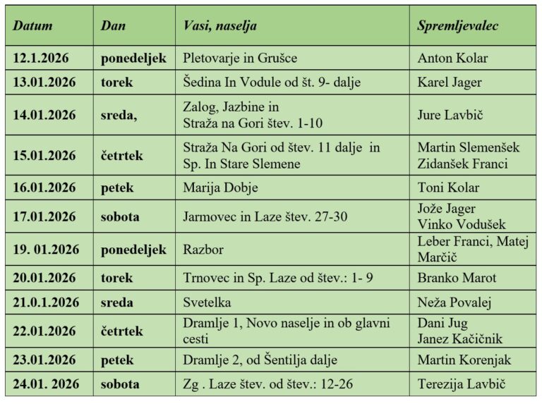 – za Martina Jagra [JL] 10.30 Ponikva za Gőbhart, Esih in Pisanec |