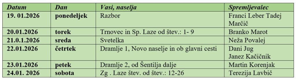 Dramlje; nedelja 25.01. ob 09:00 – Slavica Gorenak, Urška Korenjak